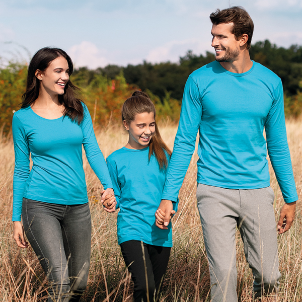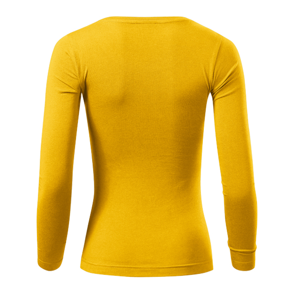 Kvalitní lehce vypasované dámské tričko s dlouhým rukávem, hlubším kulatým výstřihem a s bočními švy. V průkrčníku je zpevňující elastická lemovka z žebrového úpletu v barvě trika a saténová etiketa. Jemný, ale velice odolný bavlněný materiál je příjemný na nošení.